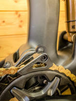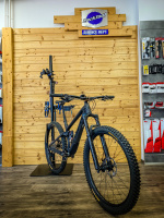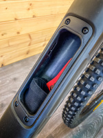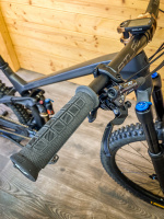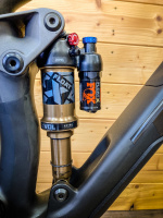 Jak je již výše uvedeno, rám je celokarbonový včetně zadní stavby, která má zdvih 130mm. Vychytávkou tohoto rámu je vnitřní úložný prostor na spodní rámové trubce (pod montáží pro košík), do kterého se vejde základní nářadí na opravu defektu, multiklíč a duše. Vše pěkně uspořádané v neoprenovém obalu aby nic nebouchalo. Vidlici Pavel nechal sériovou, konkrétně se jedná se o Fox Rhythm 36 se zdvihem 140mm. Vzhledem k ostatnímu vybavení kola by se šikla verze Kashima, ale ta se nevyrábí-průměr vnitřních nohou 36 je až od 150mm zdvihu. Tlumič Fox Performance bez expanzní nádobky byl nahrazen Foxem Float X ve verzi Racing, tedy už v Kashimě.