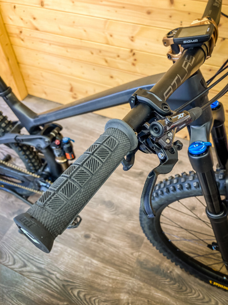 Kokpit doznal kompletní změny. Místo továrního Bontrageru svítí kanadský Race Face. Představec Turbine v barevném provedení Kash money a řídítka Atlas. Pevný úchop obstarávají gripy ODI. Pohodlné sezení zajišťuje sedlo Chromag Lynx DT uchycené na teleskopické sedlovce Crankbrothers se zdvihem 150mm.